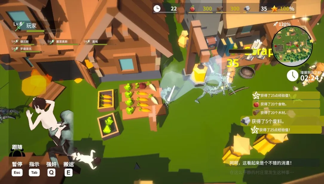 据点内的受精与杏处理场景可通过俯视角观察,