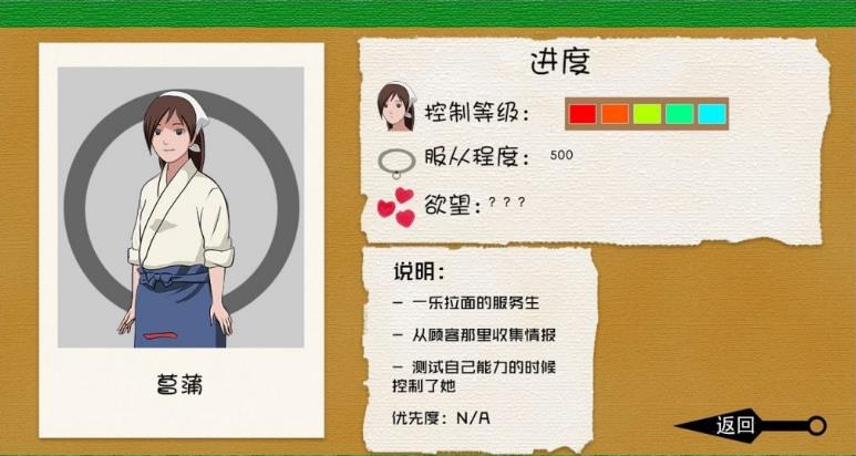所以游戏的任务就是要通过各种手段把火影里的女角们全部催眠弄到手。