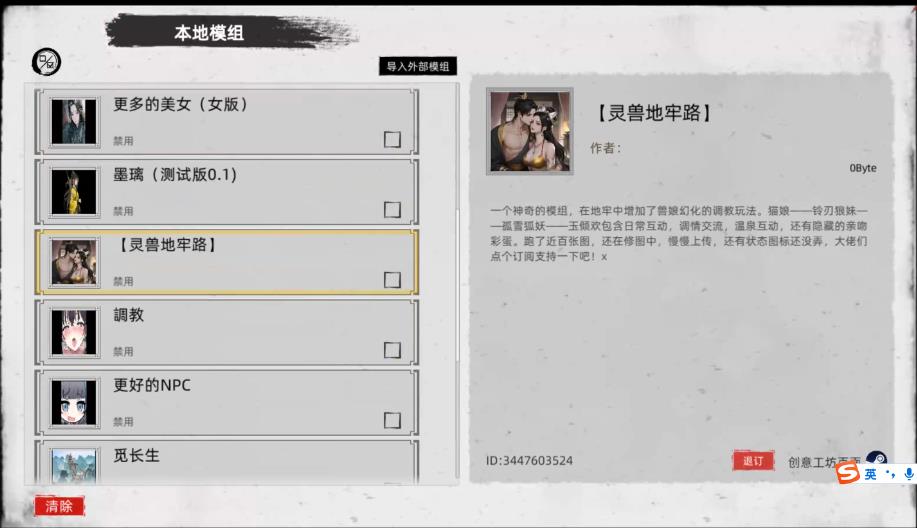 包含了全部角色美化MOD,大量额外女角色MOD(小龙女/杨幂/热巴都有),地牢调教系统MOD/卖春系统MOD等等