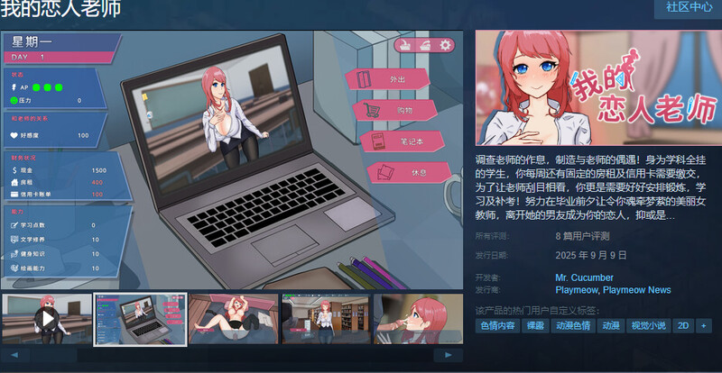 內含多款小游戏,以及丰富的互动机制,包括约会,偷窥,收集情报,偷情。