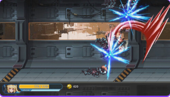 玩家将扮演战斗专家劳拉,在充满敌意的星球间展开激烈战斗。通过衔接技能、冲刺位移、击晕控制,
